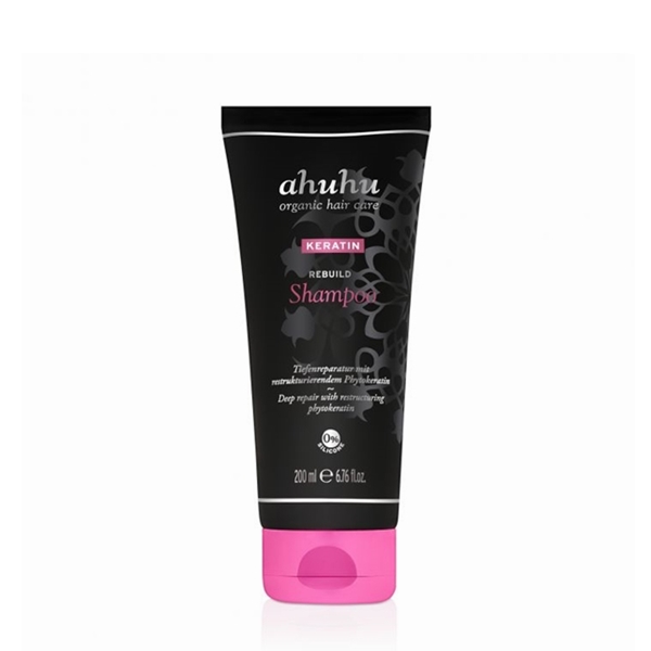 The ahuhu KERATIN Rebuild Build-Up Shampoo has a strong effect  against hair breakage  and damaged hair. Plant-based phytokeratin  can penetrate deep into the hair and build it up again from the inside out. Pomegranate and amaranth make it  elastic  and also provide valuable  vitamins . Stressed, severely damaged as well as  colored, bleached and permed  hair is restructured and regains its  healthy appearance  . It becomes visibly  smoother and shiny . Hair breakage is counteracted, split ends and frizz are   combated intensively. A special  moisture-save complex ensures that no moisture is removed from the hair when it is washed.