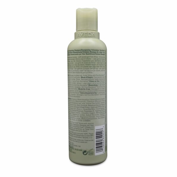 Pure Abundance â„¢ Volumizing Shampoo has a plant-based formula boosted by certified organic acacia gum Aroma with jasmine, certified organic peppermint, palmarosa and ylang ylang. It lifts fine hair and fills it out, leaving it looking fuller and feeling thicker.