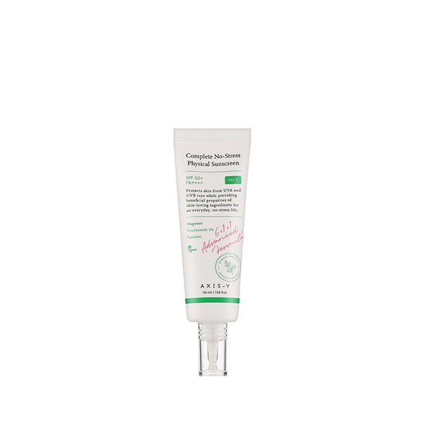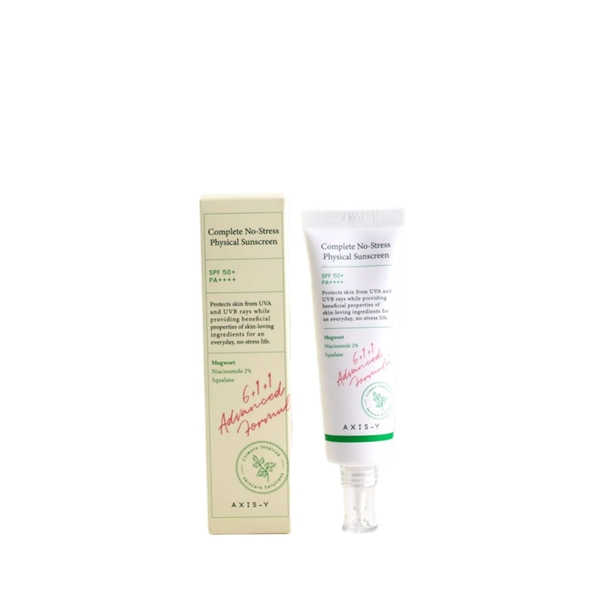 AXIS-Y’s Complete No-Stress Physical Sunscreen is a skin-soothing, mineral-based SPF specially formulated to protect and hydrate without irritation. Now enhanced with squalane and hyaluronic acid, it delivers deep hydration while shielding the skin with broad-spectrum SPF50+ PA++++ protection. Infused with calming botanical extracts like mugwort, calendula, and chamomile, it helps defend against environmental stressors and free radicals. A touch of 2% niacinamide adds a radiant, even-toned finish, making this lightweight, cream-textured sunscreen perfect for daily use—even on sensitive skin.