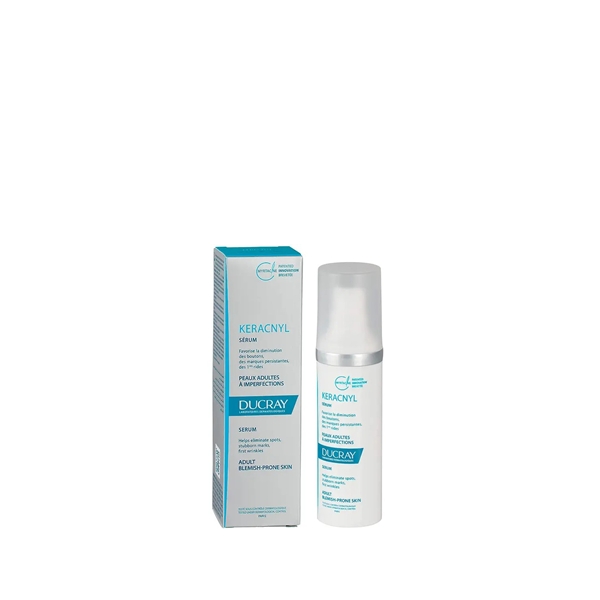 Ducray Keracnyl Face Care Serum 30ml is a multi-action skincare solution designed especially for adult, acne-prone skin. This innovative serum targets breakouts, post-blemish marks, and early signs of aging in one effective formula. Its lightweight milky texture absorbs quickly, leaving the skin hydrated, smoother, and comfortably matte without any sticky feel. Powered by Ducray’s patented Myrtacine®, the serum helps reduce acne-causing bacteria and visibly improves the look of blemishes. Over time, it works to diminish dark spots left by breakouts while improving skin texture. With daily use, the product also supports anti-ageing care by softening fine lines and promoting a clearer, more refined complexion. Dermatologically tested, Keracnyl Serum delivers visible results without compromising comfort, making it an ideal choice for women who want clearer, healthier, and more radiant skin.