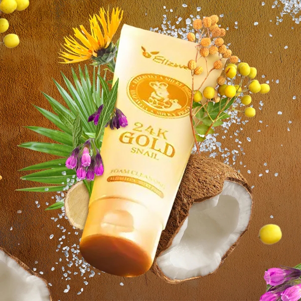Cleansing foam with 24K gold and snail mucin for youthful skin.