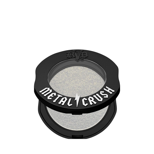 The Kat Von D Gold Skool Metal Crush Extreme Highlighter delivers a bold, high-impact glow designed for those who love statement-making radiance. Featuring a pale white-gold tone with a striking glitter finish, this highlighter focuses more on reflective sparkle than traditional powder pigment. The finely milled, flat glitter particles adhere well to the skin, creating intense shine that appears luminous rather than gritty or patchy.