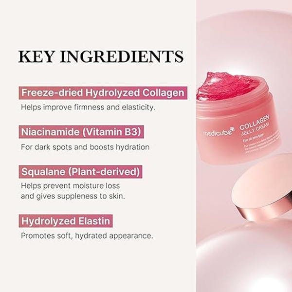 A transparent collagen jelly cream that provides anti-aging benefits to enhance facial contours, promote firmness, and achieve a polished and glowing complexion.