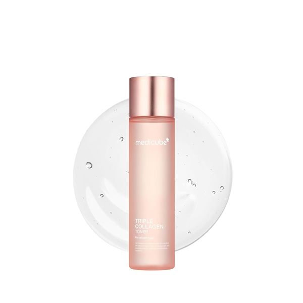 Medicube Triple Collagen Toner 4.0 is a revitalizing toner designed to hydrate, firm, and enhance skin elasticity. Infused with a triple collagen complex—hydrolyzed collagen for deep conditioning, atelo collagen for moisture retention, and soluble collagen for skin-plumping benefits—this toner helps reduce visible signs of aging, such as fine lines and wrinkles. Its lightweight, fast-absorbing formula softens the skin and improves texture while prepping it for the next steps in your routine. Dermatologically tested and suitable for all skin types, it delivers lasting hydration and a smoother, more youthful appearance with daily use.